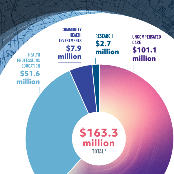 As a not-for-profit health system, our mission of caring extends beyond our facilities. Each year, we invest millions to improve our region's health and economic vitality for many years to come. We measure that investment—also known as "community benefit"—each year.